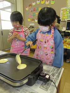 | ホットケーキづくりとっても楽しかったよ☆ とってもじょうずに出来ました♪ |