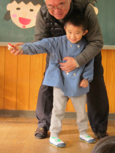 | コマの回し方を教えてもらったよ☆ 上手に回せたよ♪ |