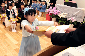 | 大きな声でお返事をして 卒園証書をもらいました。 |