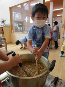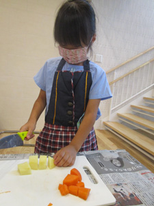 | カレー作りをしたよ! 野菜を切ったり炒めたり☆ おいしいカレーが出来ました♡ |