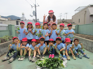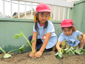 | みんなでお芋の苗を植えたよ。大きくな~れ!! |