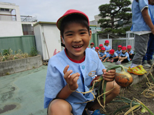 | みんなで植えた玉ねぎがこんなに大きくなったよ。 カレー作りで使おうよ!! |