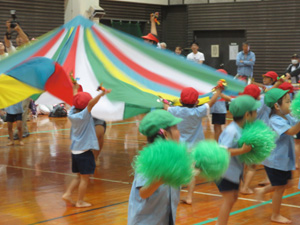 | 大きなバルーンを使って緑組さんと一緒に踊ったよ。 |