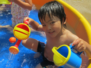 | 暑い日はプールで水遊び! 楽しいな♪ |