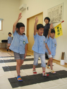 | 扇子とお花を持って上手に踊ったよ☆ 着物を着れてうれしかったよ!! |