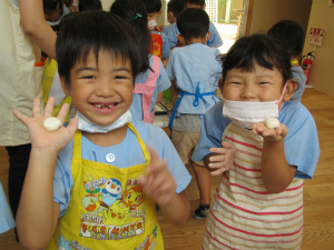 | お月見団子を作ったよ! 上手にまるめられたよ♪ |